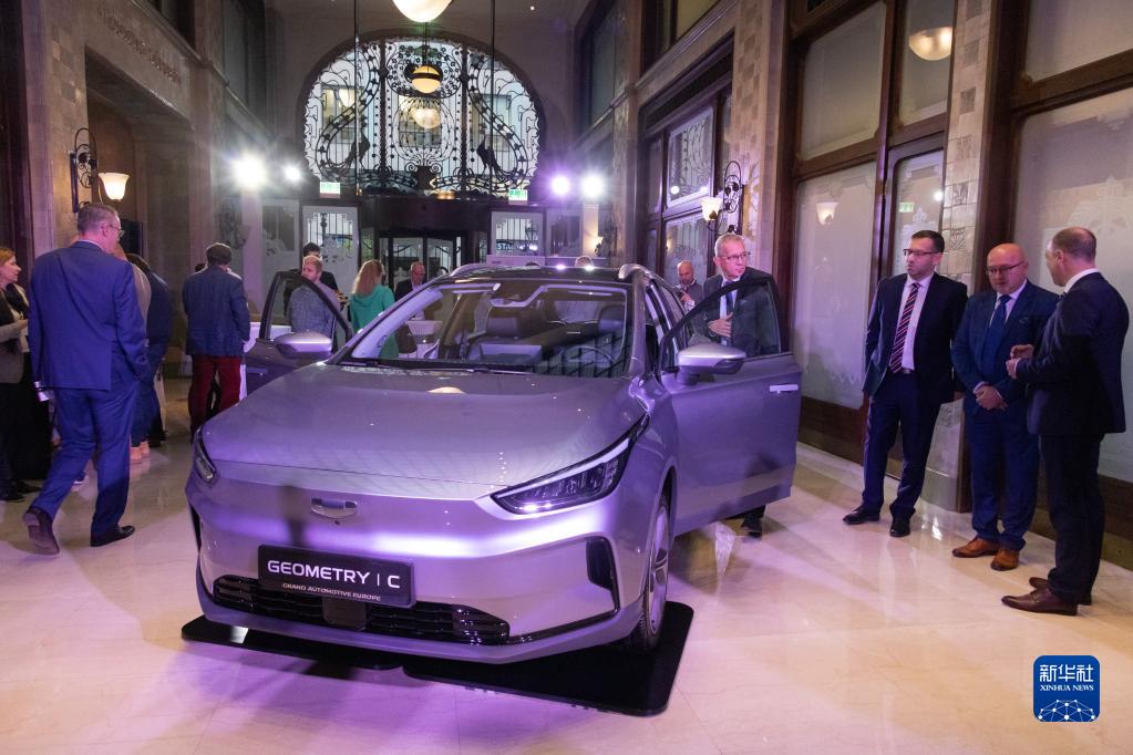 这是11月4日在匈牙利布达佩斯拍摄的吉利几何C型电动汽车。