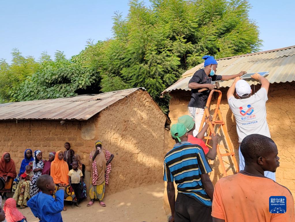 11月4日,在尼日利亚卡诺州邦库雷区劳特耶村,技术人员安装调试太阳能家用照明设备。
