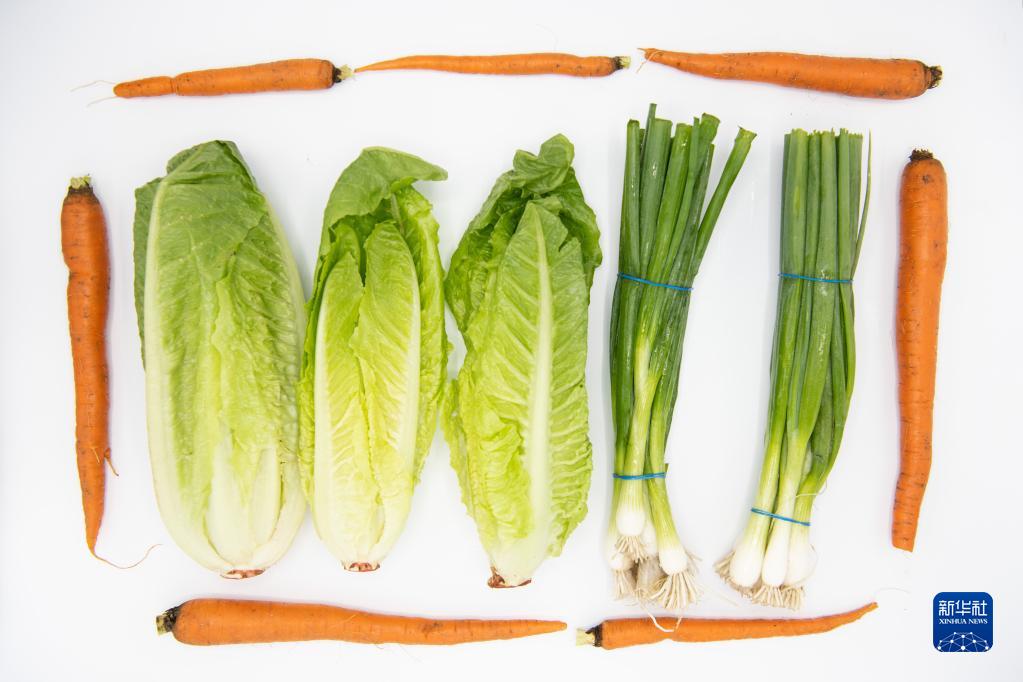 在美国弗吉尼亚州一家连锁食品超市,10美元能买到三棵罗马生菜、两把小葱和一把胡萝卜(11月5日摄)。