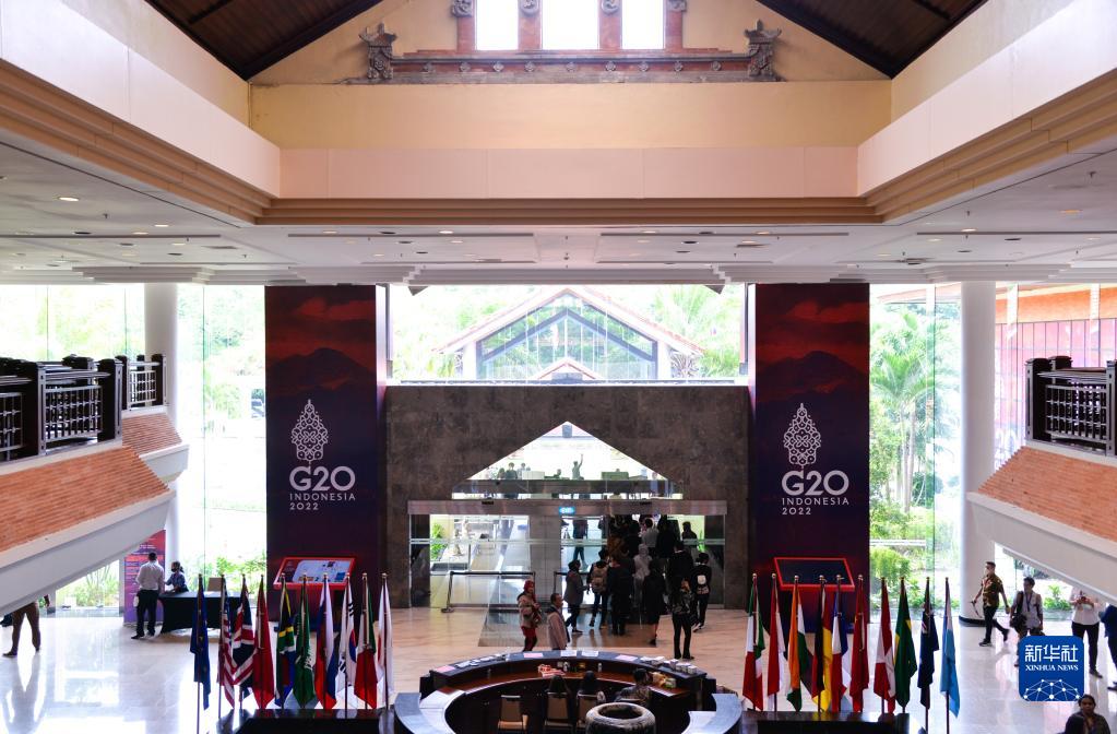 这是11月13日在印度尼西亚巴厘岛拍摄的峰会媒体中心内景。