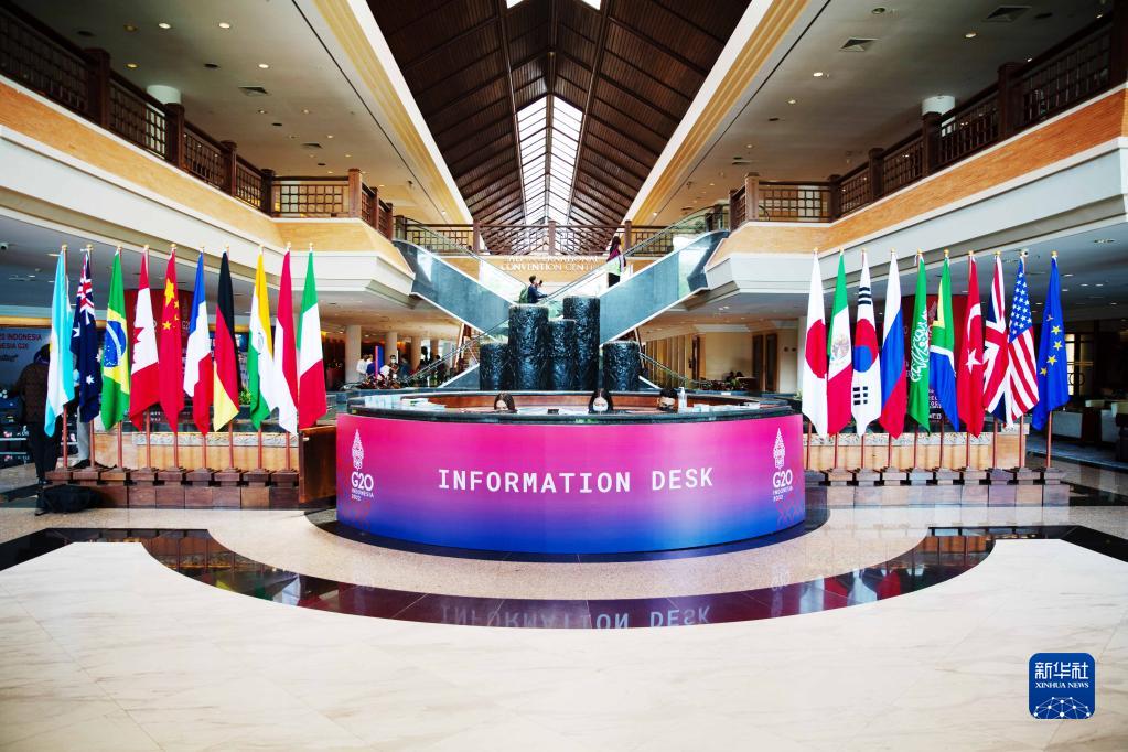 这是11月13日在印度尼西亚巴厘岛拍摄的峰会媒体中心内景。
