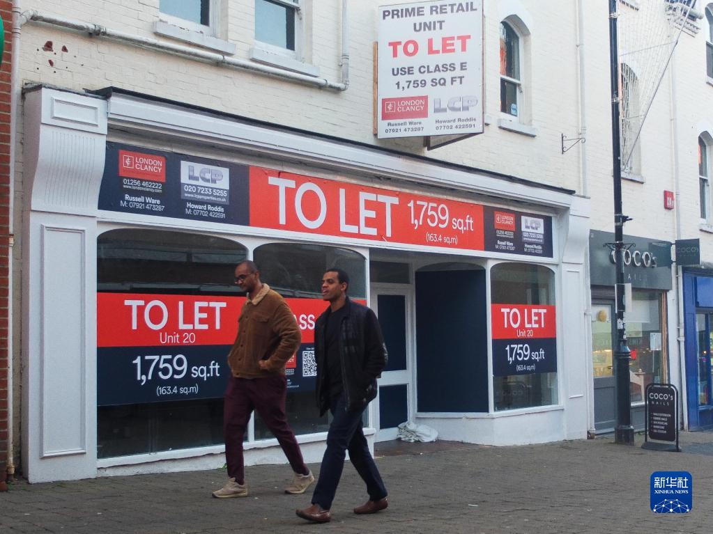 11月13日,人们走过英国贝辛斯托克街头一家关门招租的店铺。