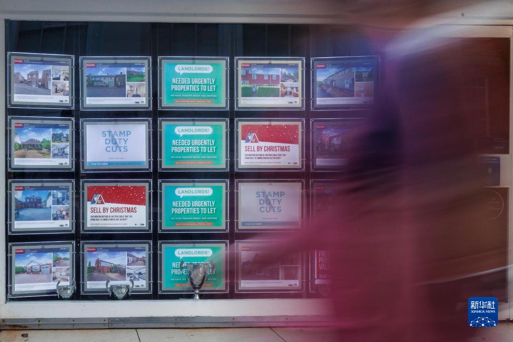 11月13日,行人走过英国贝辛斯托克一家房屋中介门店。