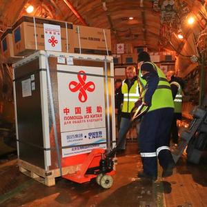 11月12日,工作人员在白俄罗斯明斯克国际机场卸载中国政府援助的新一批新冠肺炎疫苗。新华社发(任科夫摄)