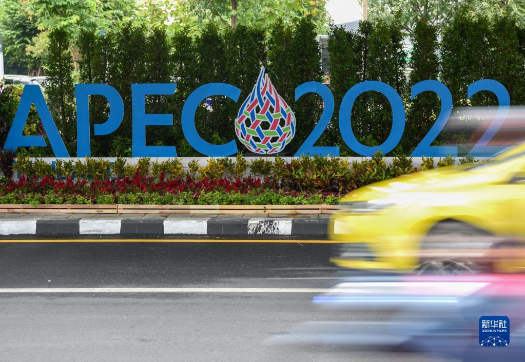 这是11月14日在泰国首都曼谷街头拍摄2022年APEC会议标识。