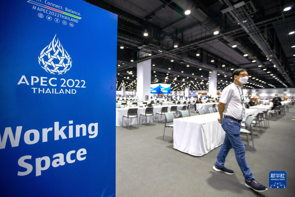 这是11月14日在泰国首都曼谷拍摄的APEC会议媒体中心。