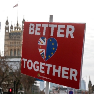 2020年12月9日,反对“脱欧”的示威者手举标语牌站在英国伦敦议会大厦外。新华社记者韩岩摄