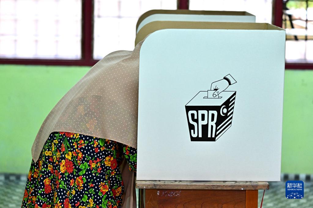 11月19日,选民在马来西亚彭亨州贝拉的一处投票站填写选票。