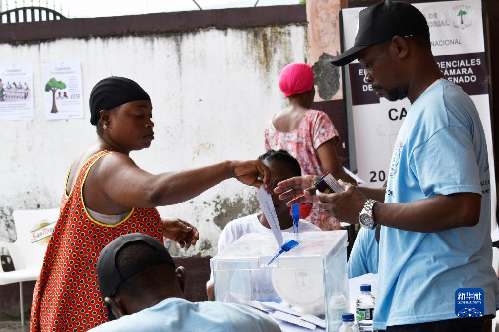 11月20日,一名选民在赤道几内亚首都马拉博的投票站投票。新华社发(阿卡巴摄)