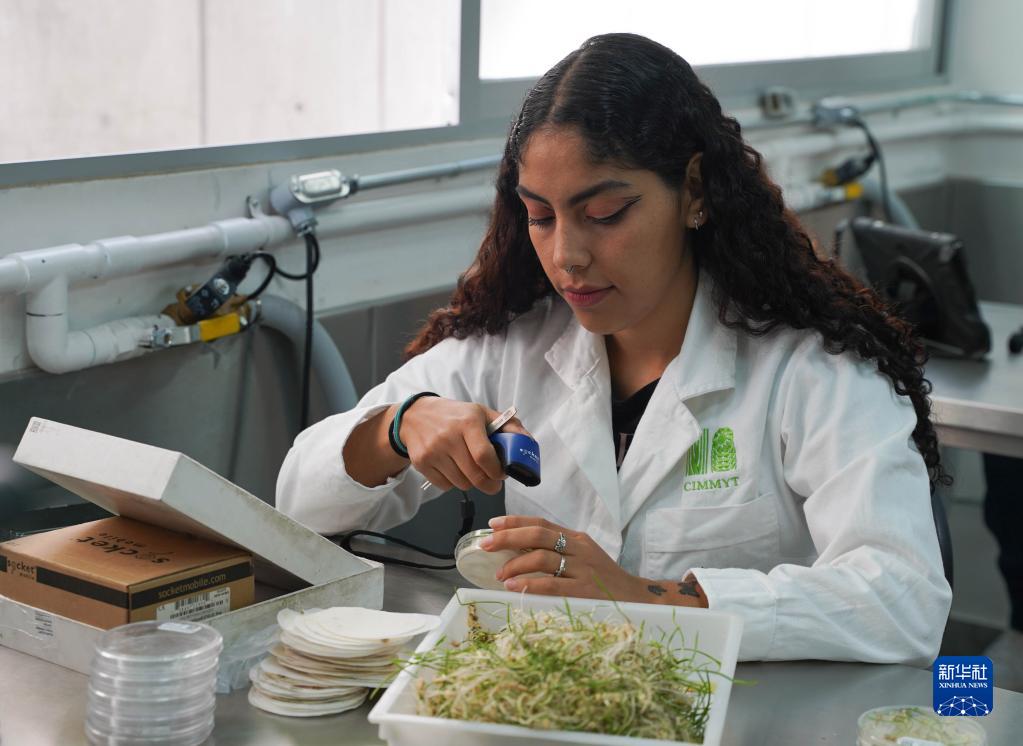 11月7日,一位研究人员在墨西哥特斯科科郊外国际玉米小麦改良中心做实验。