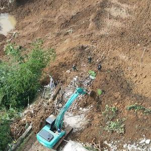 11月22日,救援人员在印度尼西亚西爪哇省展玉地区地震震中附近的山体滑坡现场开展救援(无人机照片)。