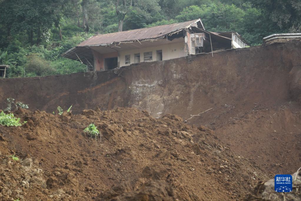 这是11月22日在印度尼西亚西爪哇省展玉地区地震震中附近拍摄的山体滑坡现场。