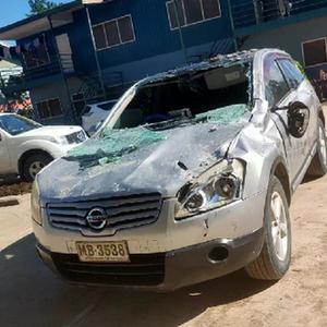 这是11月22日在所罗门群岛首都霍尼亚拉拍摄的一辆受损的汽车。