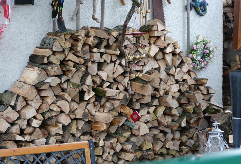 这是11月1日在德国首都柏林拍摄的一户居民储存的木柴。冬季将至,为应对能源价格持续上涨,德国一些民众开始储存木柴。(新华社记者任鹏飞摄)