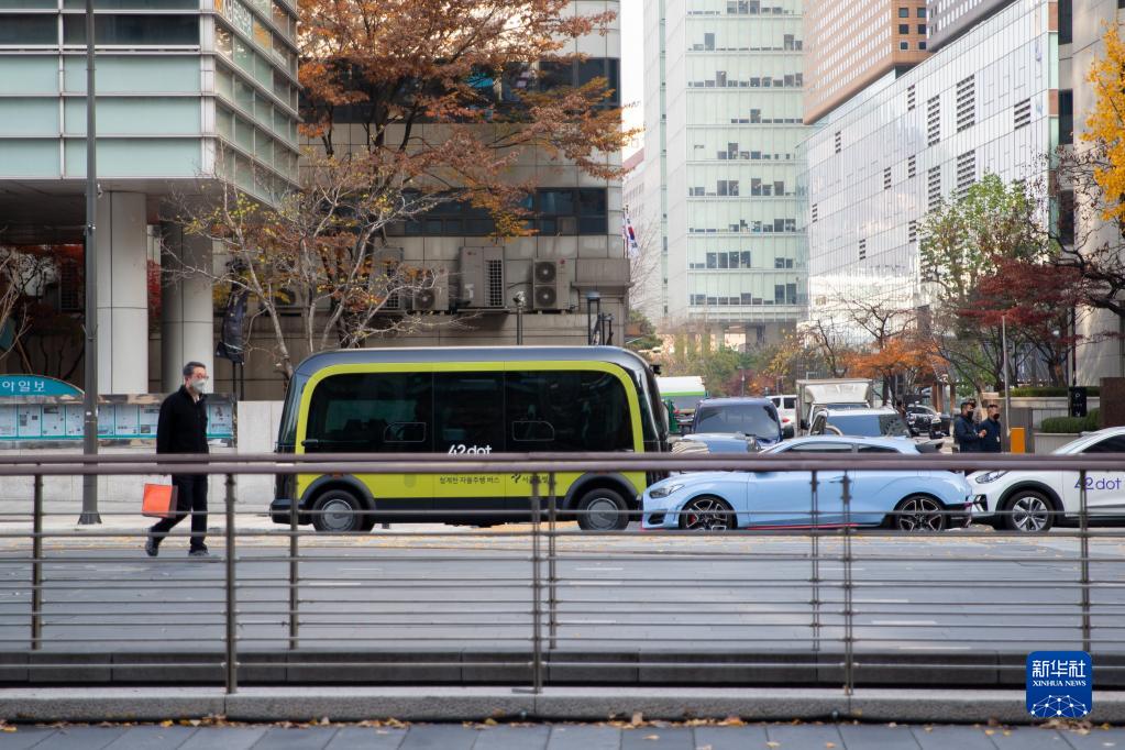 11月24日,一辆自动驾驶巴士在韩国首尔的街头行驶。