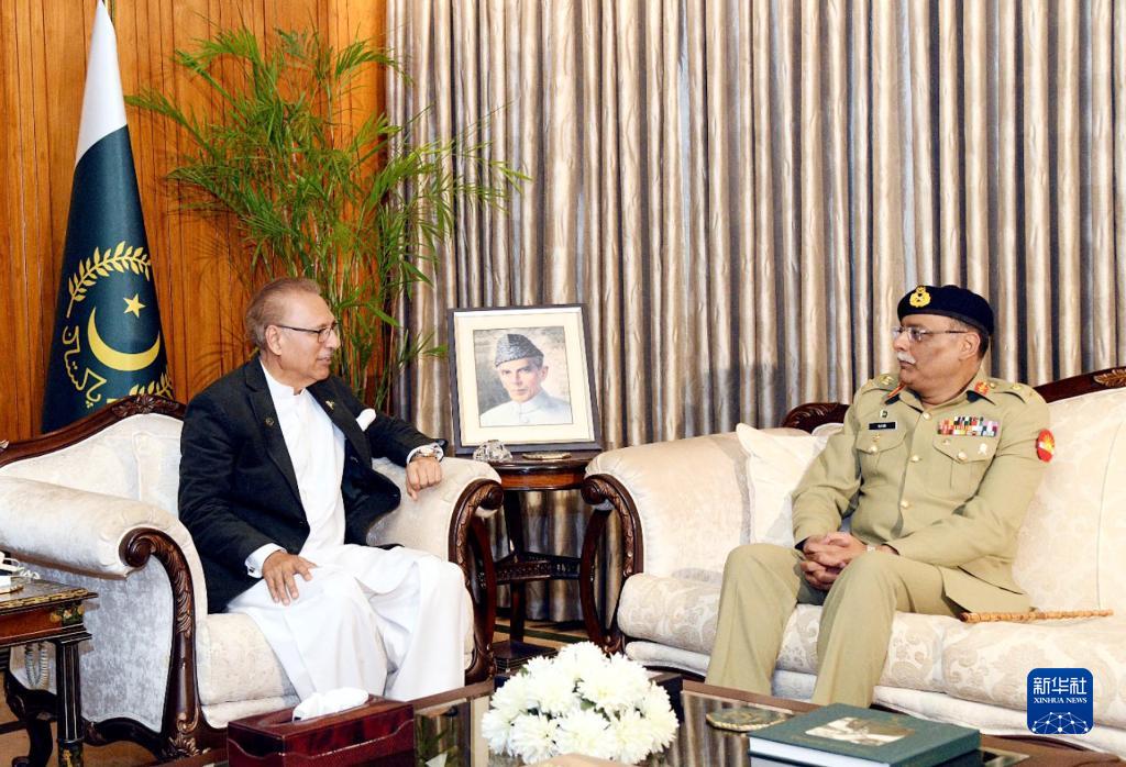 11月24日,巴基斯坦总统阿尔维(左)在首都伊斯兰堡会见候任参谋长联席会议主席萨希尔·沙姆沙德·米尔扎。