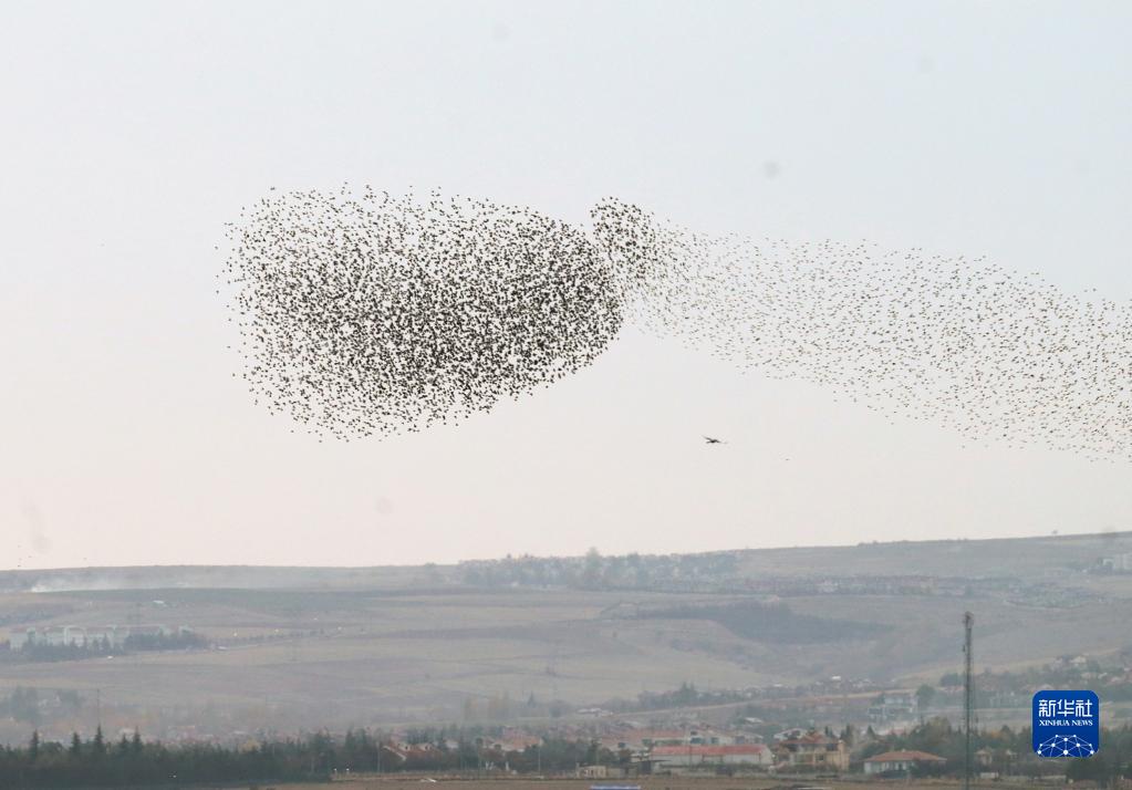 11月21日,一群椋鸟飞过土耳其安卡拉郊外的原野。