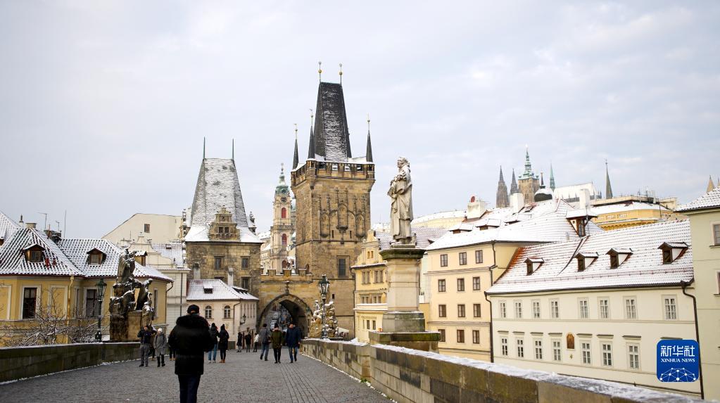 这是11月19日在捷克首都布拉格拍摄的雪后的查理大桥。