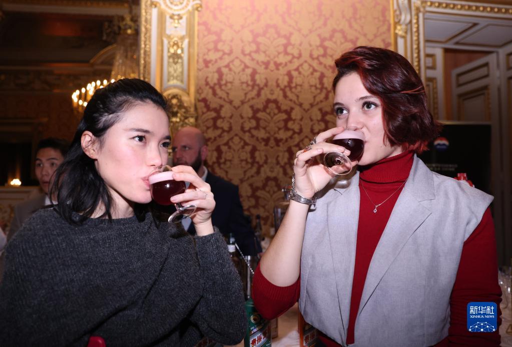 11月28日,在位于巴黎的法国外交部举行的榜单揭晓活动现场,来宾品尝鸡尾酒。