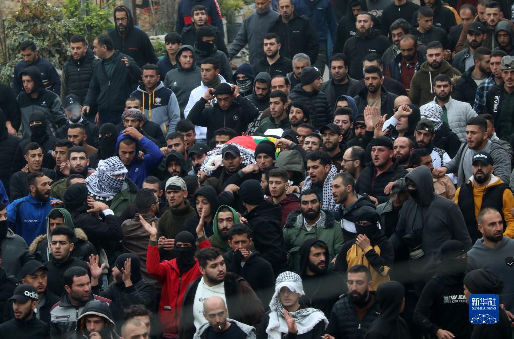 11月29日,在约旦河西岸城市希伯伦北部的拜特乌迈尔,人们为被以色列军队打死的巴勒斯坦人送葬。新华社发(马蒙·沃兹沃兹摄)