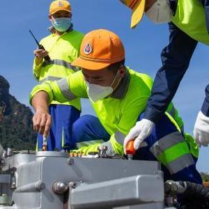 12月1日,在老挝琅勃拉邦,中老铁路双方员工共同维护线路。