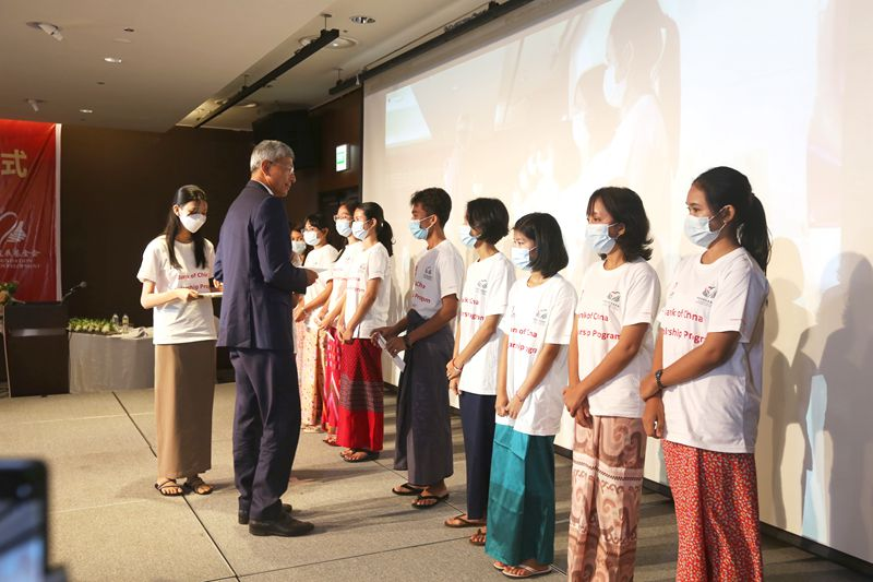 中国银行奖助学金项目由中国银行出资,中国乡村发展基金会执行。中国驻缅大使陈海、缅甸央行行长丹丹瑞等出席仪式,中银香港副总裁陈文、中国乡村发展基金会秘书长陈红涛等线上参会。
