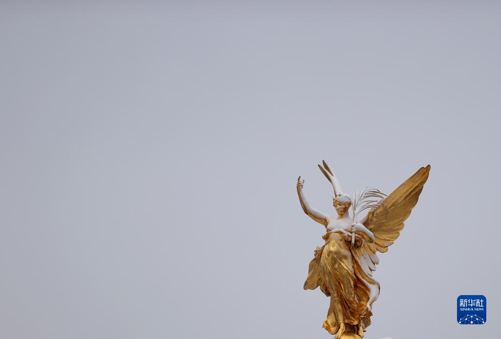 这是12月12日在英国伦敦拍摄的白金汉宫前的雕塑。