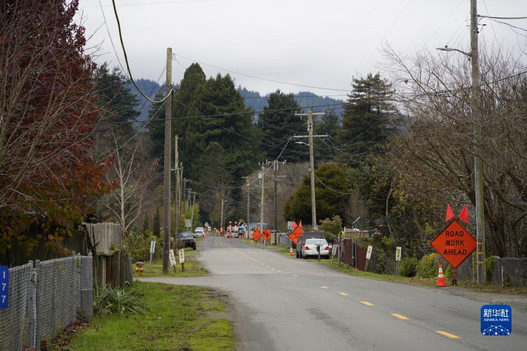 12月21日,在美国加利福尼亚州北部芬代尔,施工人员在一个村庄维修被地震破坏的公共设施。