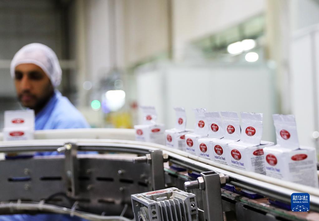 12月21日,工人在安琪酵母(埃及)有限公司位于埃及贝尼苏韦夫省的酵母包装车间工作。