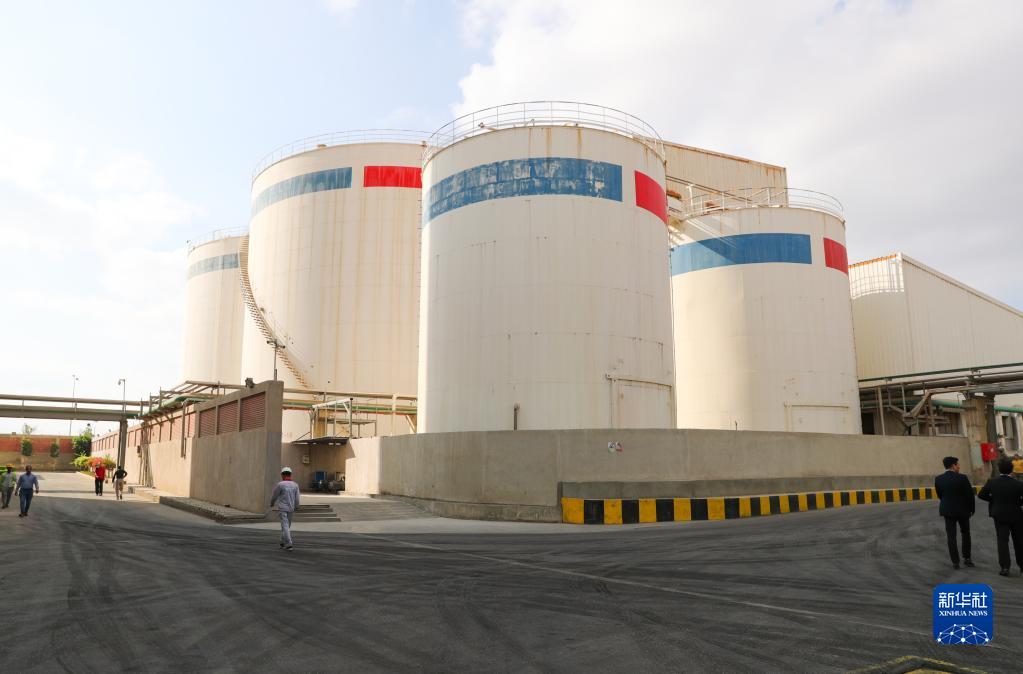 这是12月21日在埃及贝尼苏韦夫省拍摄的安琪酵母(埃及)有限公司用于存储生产酵母原料的罐子。