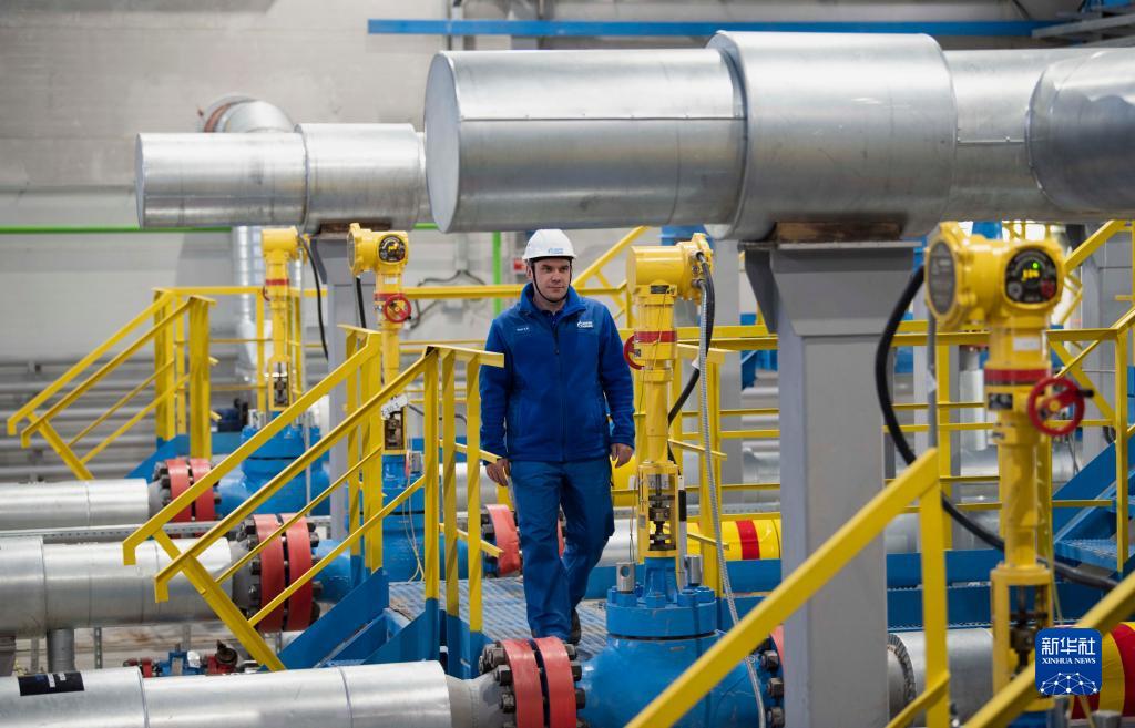 12月18日,在俄罗斯伊尔库茨克州,工作人员在科维克塔天然气气田内巡视设备。