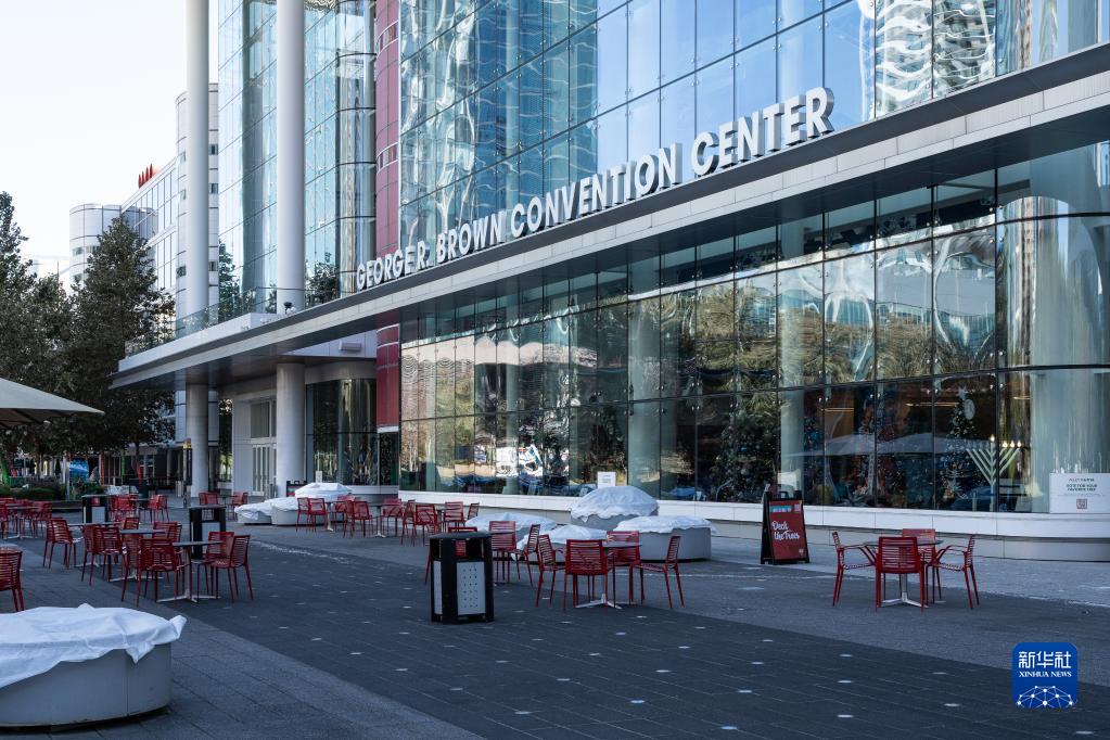 这是12月23日在美国休斯敦市拍摄的成为临时供暖场所的乔治·布朗会展中心。