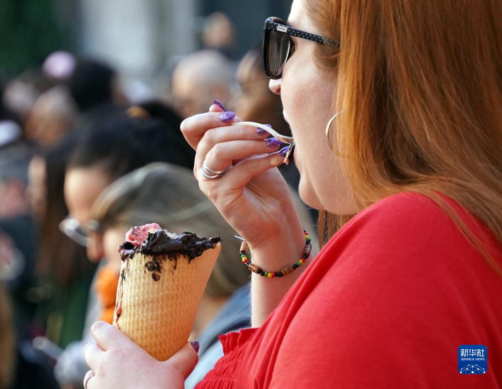 12月25日,一名女子在意大利罗马吃冰淇淋。