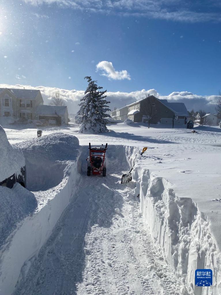 这是12月25日在美国纽约州伊利县阿默斯特地区拍摄的雪后景象。