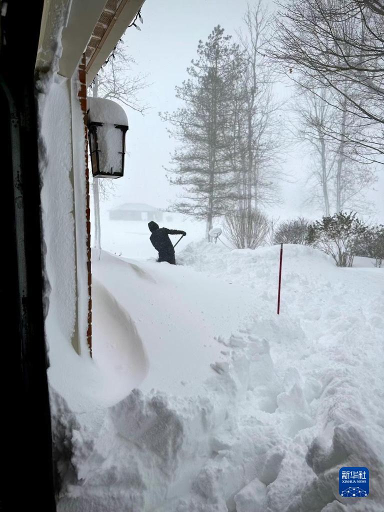 12月24日,美国纽约州伊利县阿默斯特地区的居民在清理积雪。