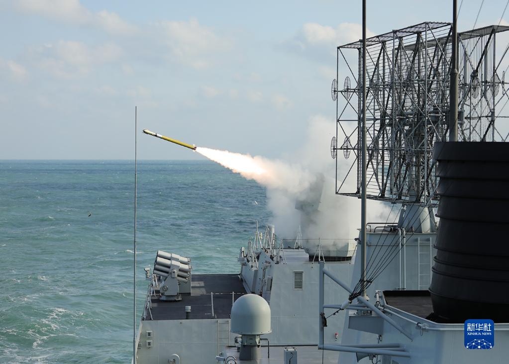12月26日,在东海某海域举行的中俄“海上联合-2022”联合军事演习联合防空课目演练中,包头舰实射防空导弹。
