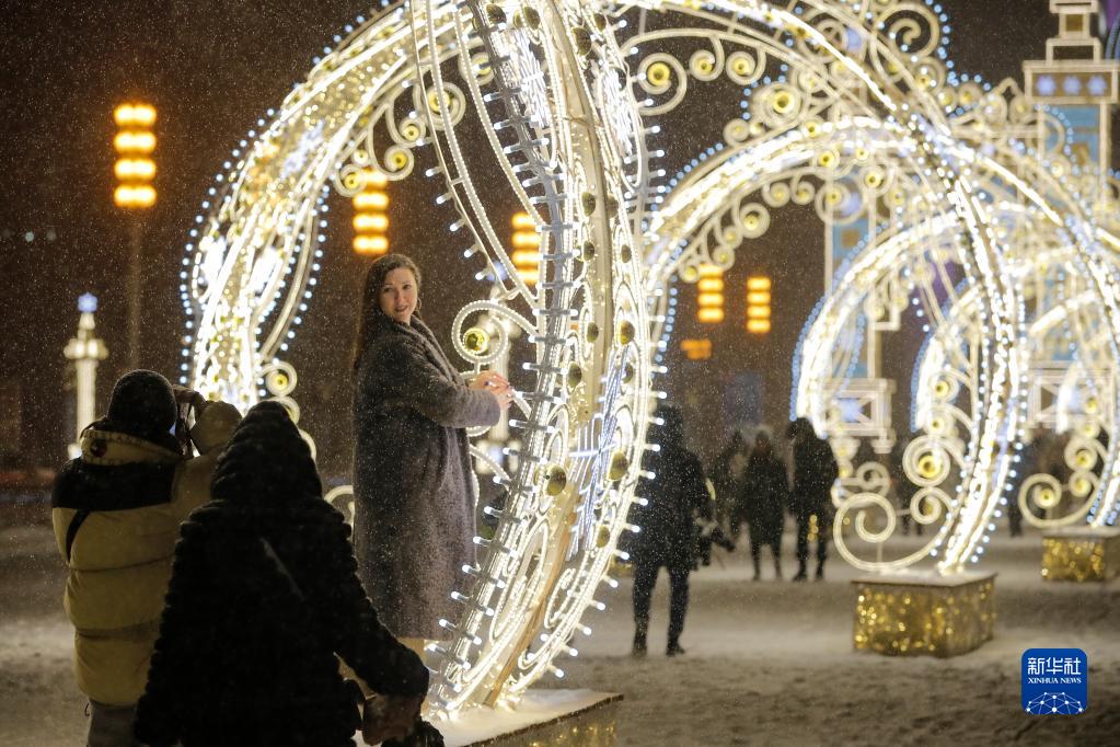 临近新年,俄罗斯首都莫斯科街头节日氛围渐浓。