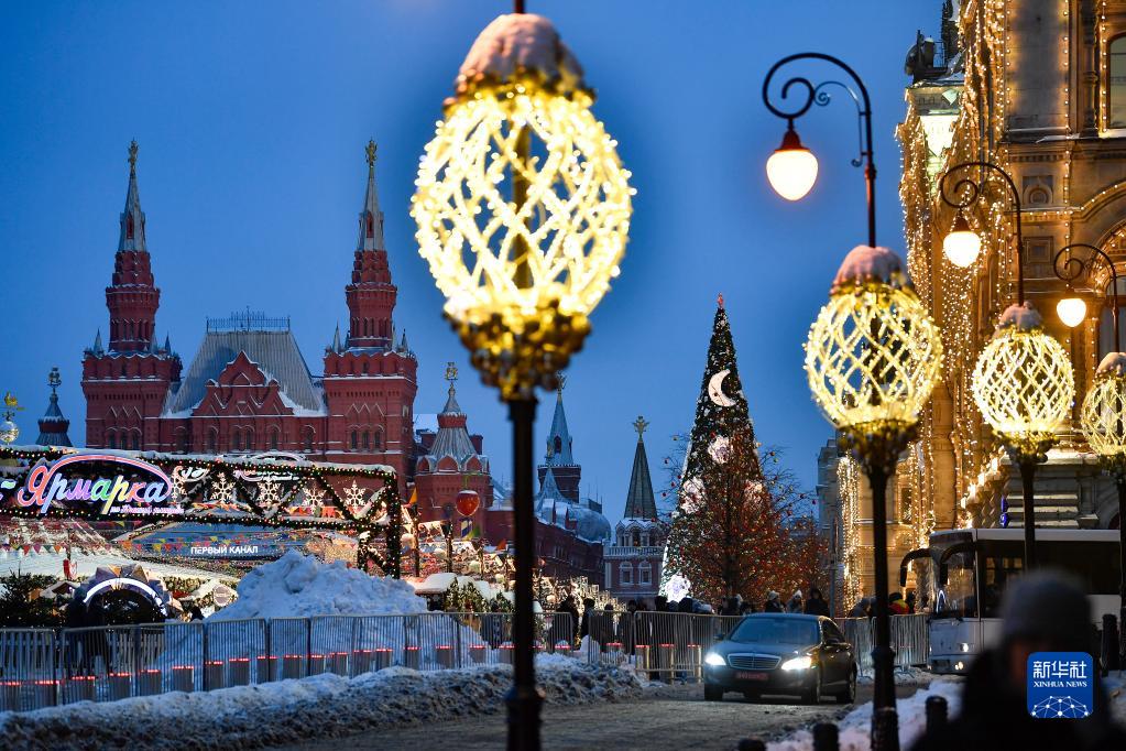 临近新年,俄罗斯首都莫斯科街头节日氛围渐浓。