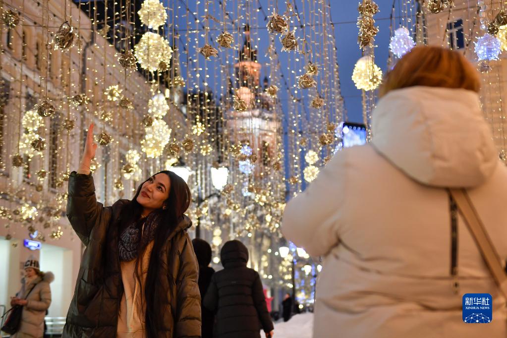临近新年,俄罗斯首都莫斯科街头节日氛围渐浓。