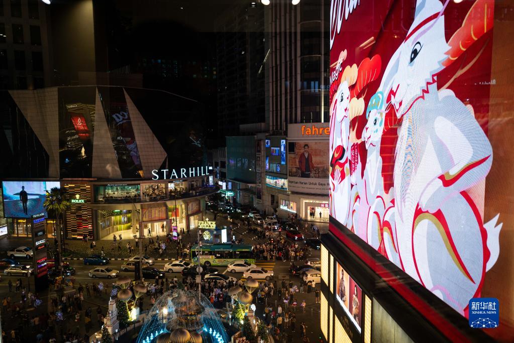 12月26日,马来西亚吉隆坡一家商场播放兔年主题广告。新华社记者 朱炜 摄