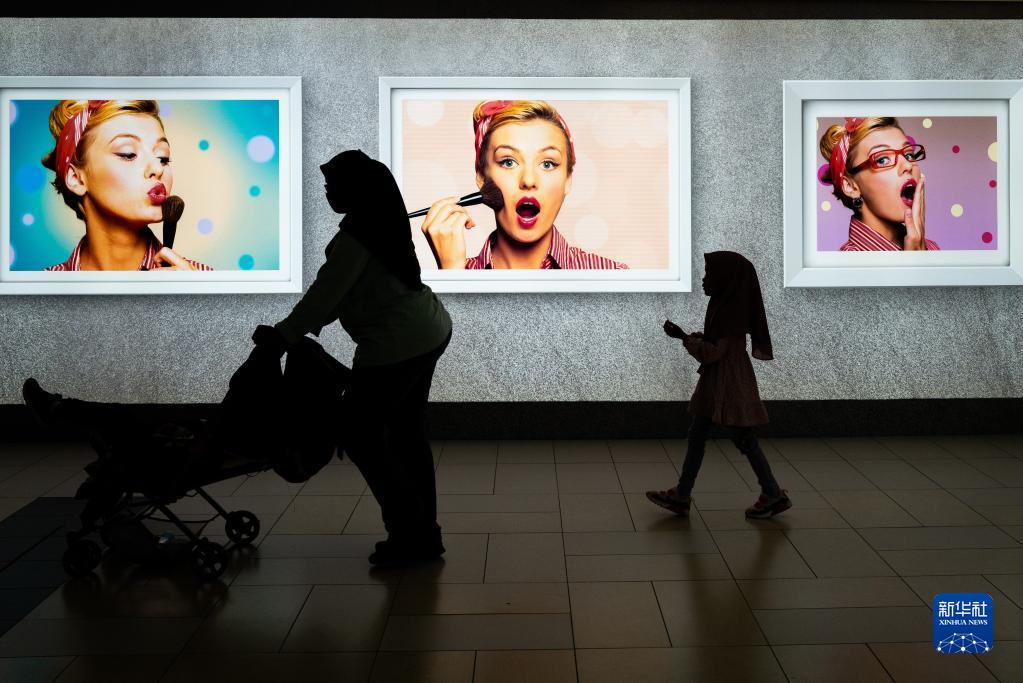 12月26日,在马来西亚吉隆坡,人们从购物招贴画前走过。新华社记者 朱炜 摄