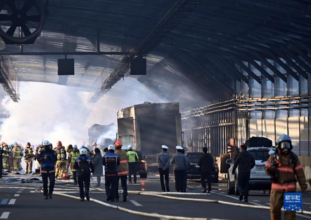 这是12月29日在韩国京畿道果川拍摄的第二京仁高速公路发生火灾的隔音隧道。新华社/纽西斯通讯社