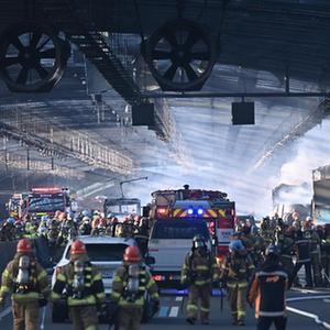 韩国一高速公路29日发生车辆追尾事故并引发火灾,目前已造成5人死亡、37人受伤。事发后,消防部门在现场部署了包括消防车在内70余台装备和约190名消防人员,目前火势基本得到控制。