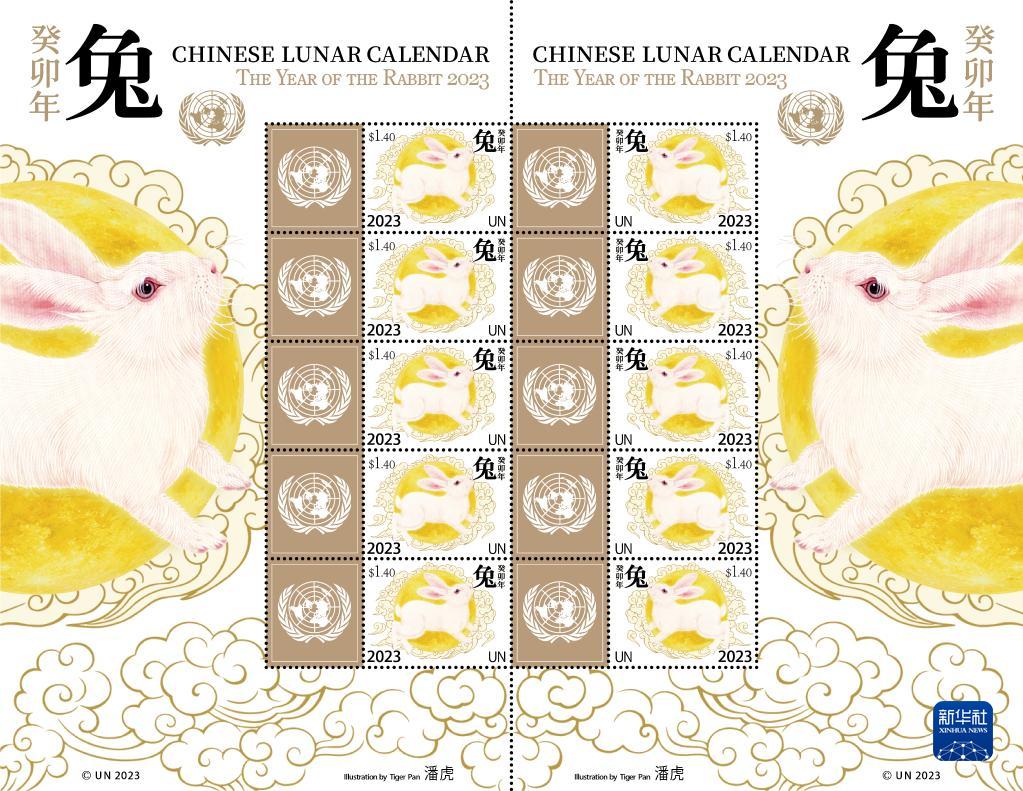 联合国邮政管理局将于2023年1月20日在纽约发行中国农历癸卯兔年特别版邮票版张,庆祝中国农历新年的到来。这是该邮票版张样图。联合国邮政管理局2010年5月首次发行以中国生肖为内容的邮票,到2021年已发行了首轮12张生肖邮票。2023年的兔年邮票是第二轮生肖邮票的第二张。新华社发(联合国邮政管理局供图)