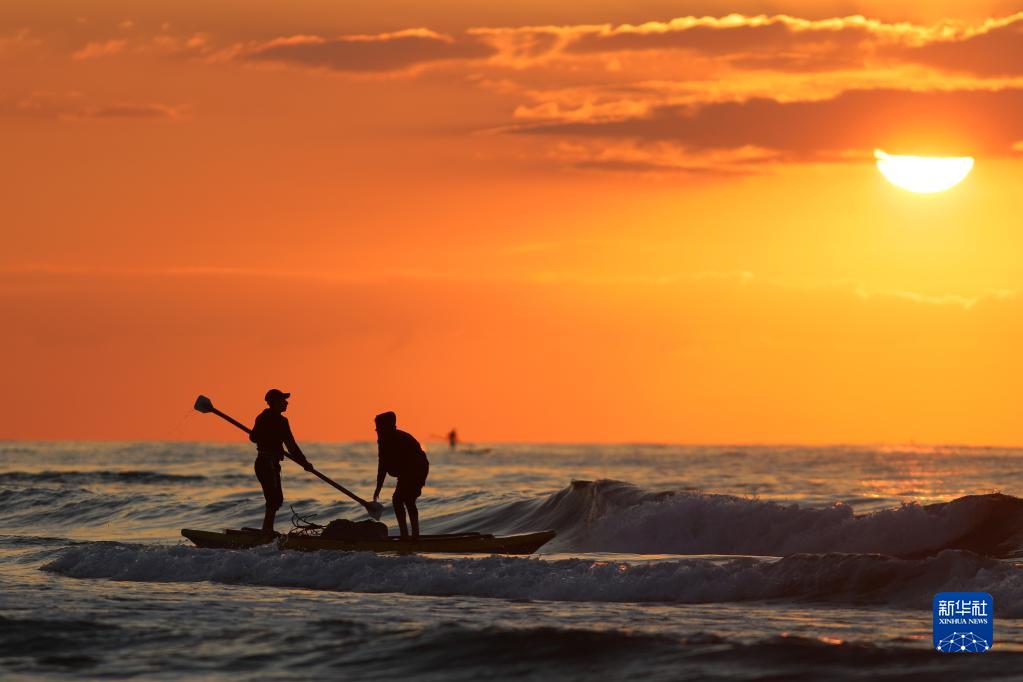 12月28日,巴勒斯坦渔民在加沙城附近的地中海水域捕鱼。