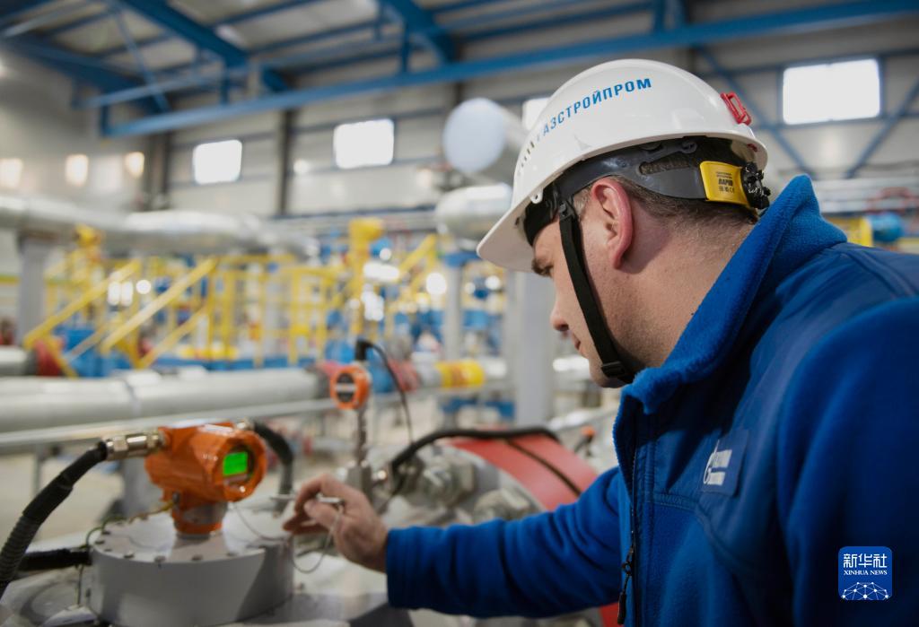12月18日,在俄罗斯伊尔库茨克州,工作人员在科维克塔天然气气田内巡视设备。