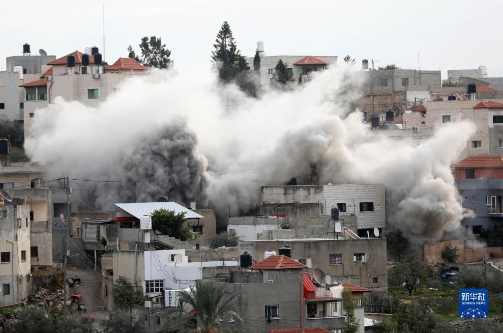 1月2日,在约旦河西岸北部城市杰宁,以色列军队对房屋实施爆破。