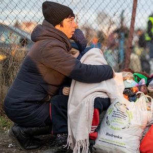 图为2022年2月26日,乌克兰人抵达波兰边境口岸梅迪卡。新华社记者周楠摄