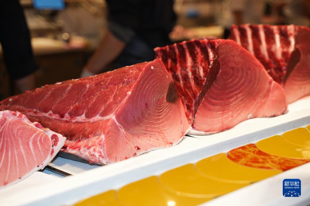这是1月5日在日本东京表参道一家餐馆拍摄的最高价金枪鱼的鱼肉。