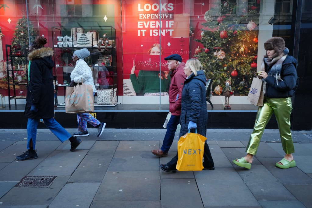 2022年12月13日,人们走过英国曼彻斯特街上的促销广告。新华社发(乔恩·休珀摄)